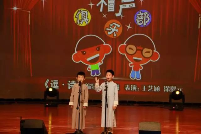 二年级王艺涵、涂熙元表演的相声《逗·诗》,声情并茂、包袱不断,赢得了阵阵掌声。将带有数字的诗句如数家珍、信手拈来:“五月人倍忙”“毕竟西湖六月中”“七月七日长生殿”……