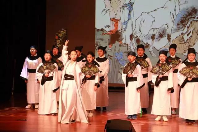 孩子们用美妙的歌声、优美的舞姿、生动活泼的表演充分展示了自己的才艺。穿插于整场演出中的三次斗诗环节,一次次地将演出推向高潮。
