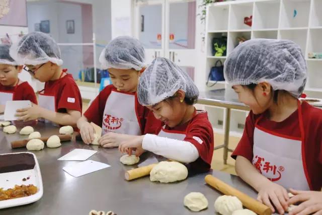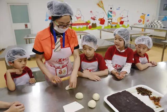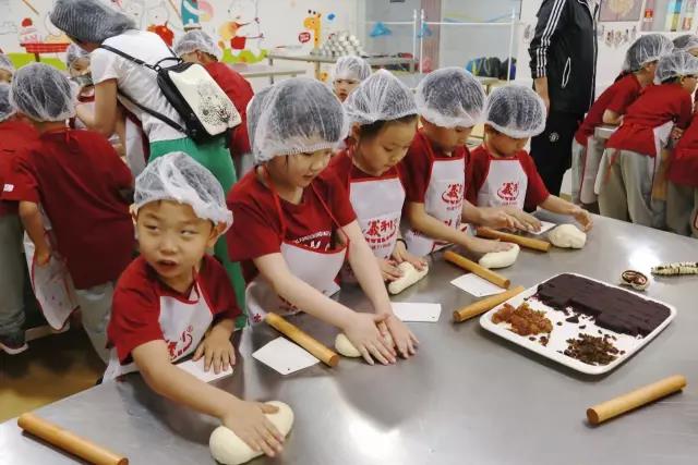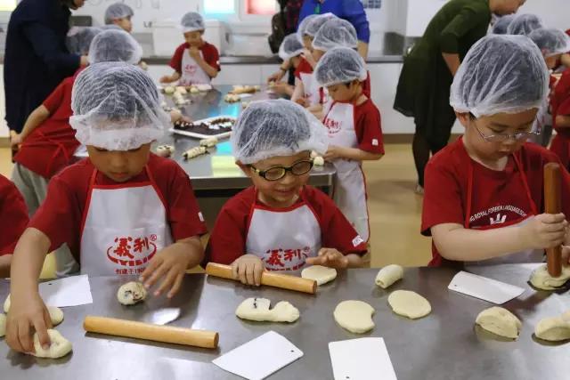 活动开始,工作人员给大家讲解注意事项,在经过洗手、穿围裙、戴工作帽等环节后,孩子们进入面包制作间。