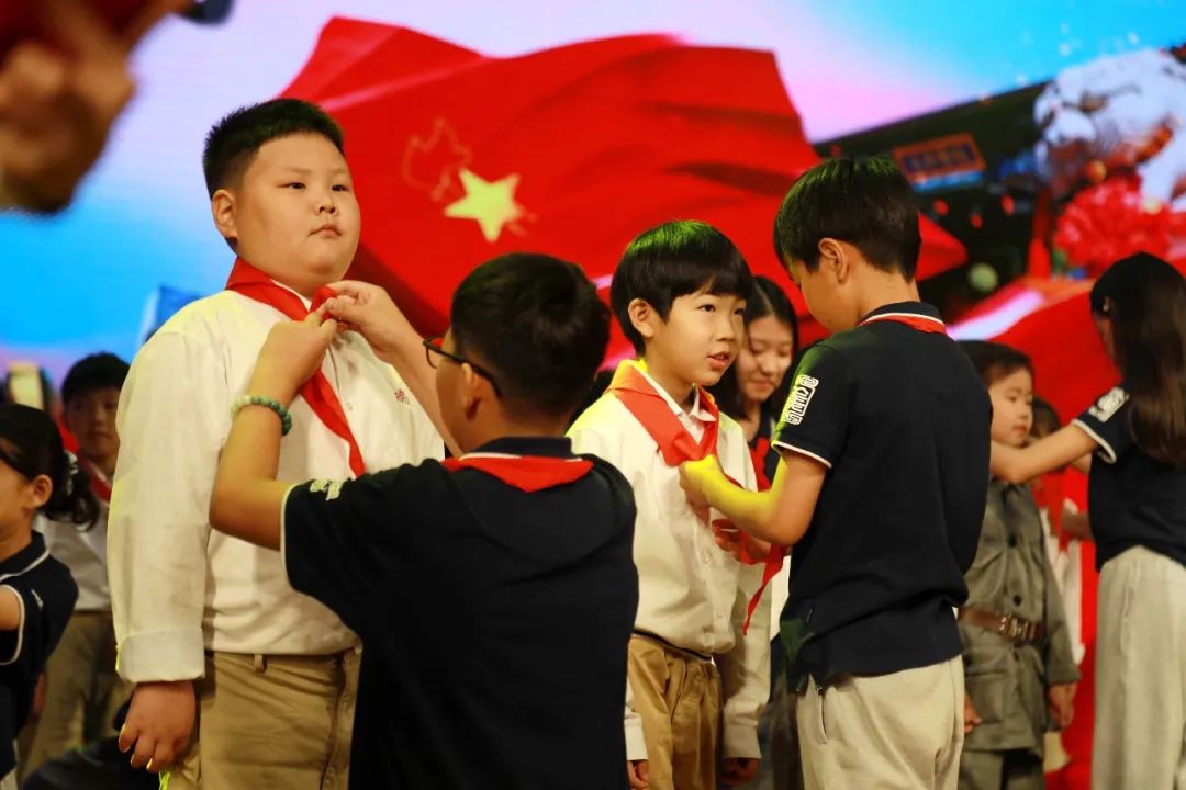 佩带着鲜艳的红领巾,少先队员们将铭记队训,遵循队章。