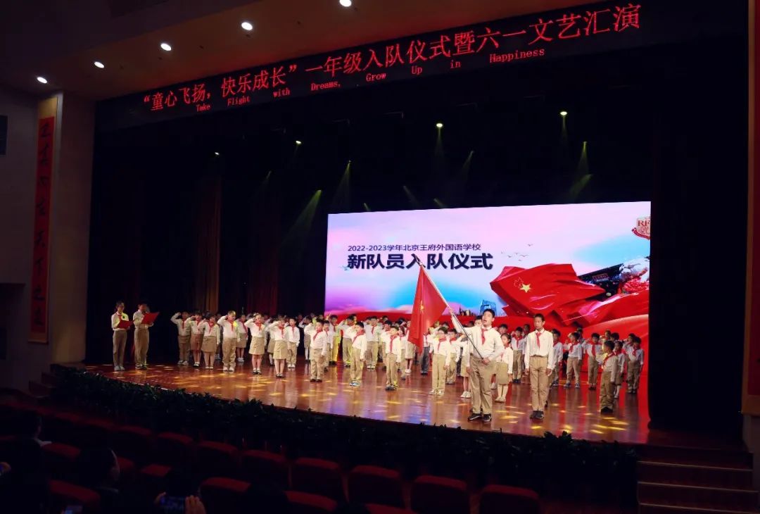 2023年6月1日,北京王府外国语学校小学部“童心飞扬,快乐成长”一年级入队仪式暨六一文艺汇演于演播厅举行。