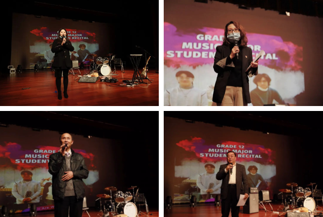 ▲音乐教师郭陈思女士、2021届年级主任房园园女士、高中教导处主任洪传木先生和北京王府学校常务校长衡孝军先生向三名学子的精彩演绎表示赞赏,对音乐教师Sylvain、袁姝娟和戏剧教师Maile的辛苦付出表示感谢,并对学子们未来学业的深造送上了良好祝福。