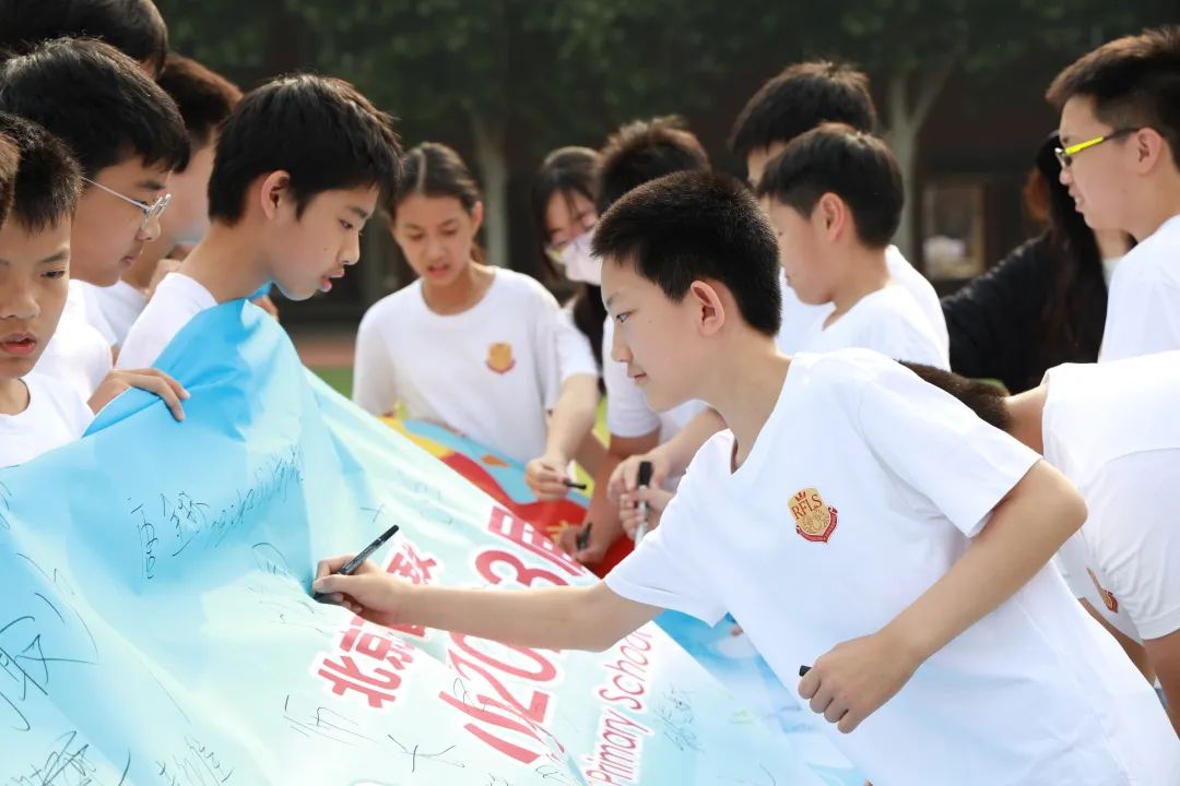 5月16日,北京王府外国语小学综素部六年级“毕业季绿茵场巨幅签名”活动正式开始。王府学子们郑重地写下自己的名字,致那曾相伴同行的岁月,致敬最美的母校,致浩瀚星海中飞扬的华年。