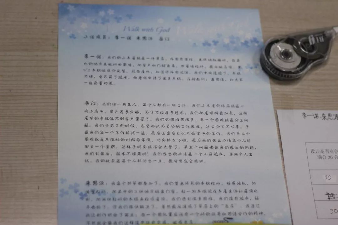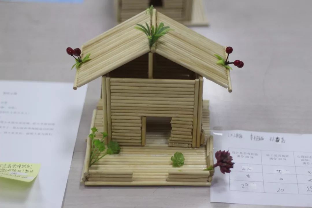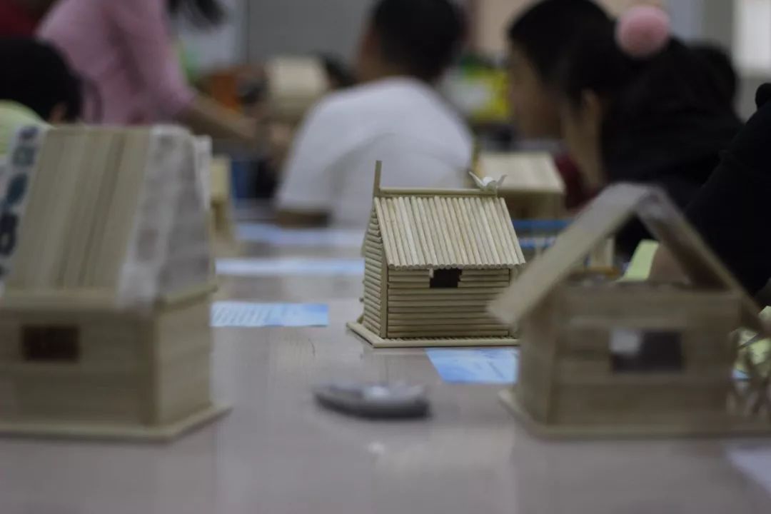 After overcoming countless mistakes, three weeks later, everyone was invited to visit the 16 different cabins made by wooden lollypops sticks in the art classroom. Students felt very proud of their own team’s creation. They also wrote down their thoughts and feelings during the creation process, as well as their blessing and best wishes to their classmates.