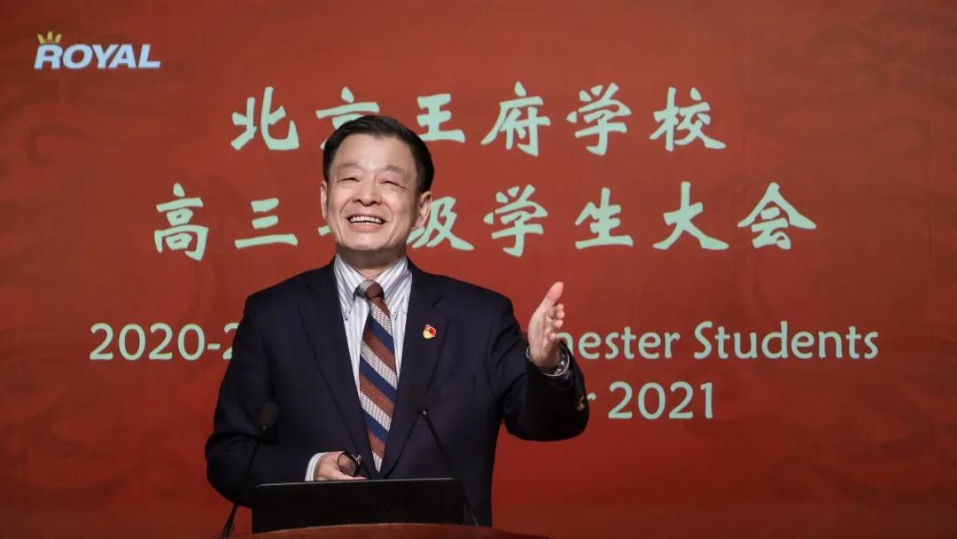在毕业季来临之际,为更好地实现不同阶段的高三学生成长目标,进一步促进学生毕业等各项重要工作的高效开展,3月4日晚,高三年级全体学生大会以线上线下形式同步召开。会上重点公布了毕业季活动安排、平安留学课程上线等多项内容,北京王府学校常务校长衡孝军先生从成绩冲刺、确定择校方向、平安留学和合理平衡学习时间等多个方面提出学习指导要求;北京王府学校校长王广发先生亲自出席会议,并叮嘱全体高三学子珍惜剩余学习时光,强化责任担当意识,正确面对当下国际形势,秉持法治思维,为迈向国际舞台,讲好中国故事做好一切准备,力争做文化的传承人、学习型国家的传承人、中西文化融合的传承人。王广发校长在高三学子升学的关键阶段,为学子送上了暖心的关怀鼓舞和方向指引。