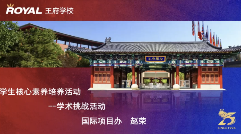 本期家长课堂邀请了国际项目办的赵荣老师,以“学生核心素养培养活动之国际学术挑战类活动”为主题,讲解王府学校的主要学术挑战资源,以及如何帮助并支持学生做好竞赛选择和规划。