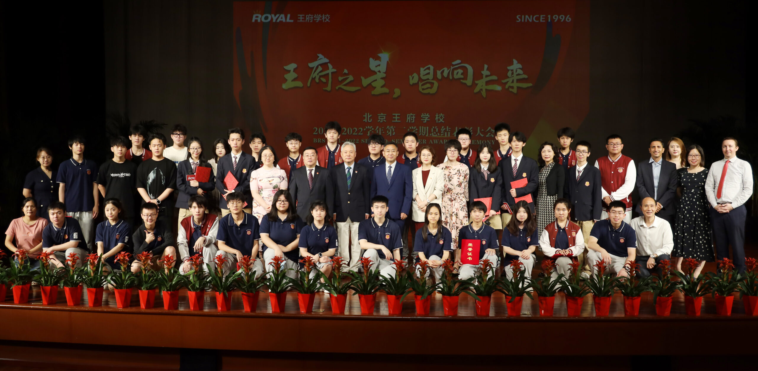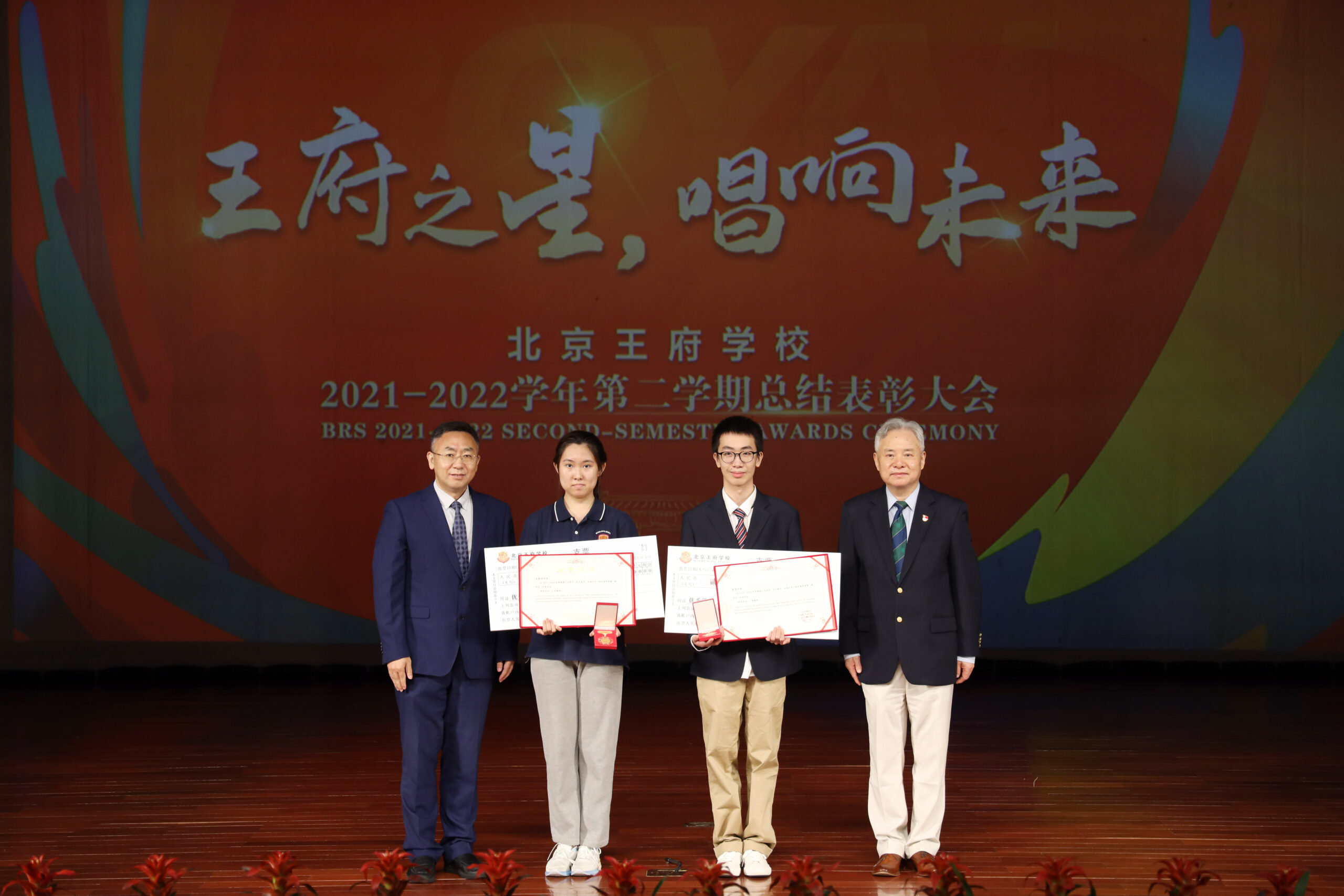 On July 7th, the second semester of the 2021-2022 academic year summary and commendation Ceremony of Beijing Royal School was successfully held on the campus. Mr. Cen Jianjun, BRS Campus Chief Supervisor, Mr. Heng Xiaojun, principal of BRS and other school leaders attended the ceremony. They wished the students successful completion of the academic tasks for this semester and congratulated the students who won various awards. Yue Junfeng from Grade ten and Ren Zitai from grade eleven gave a speech on behalf of the outstanding students. They made a summary of their study and life for the past semester and said that they would continue to study hard, actively participate in student activities and make continuous efforts to build a beautiful campus. Mr. Xu Zitong, the representative of the parents’ committee, thanked Royal School for its comprehensive qualities cultivation of the children. Students gave a wonderful dance performance in the finale.