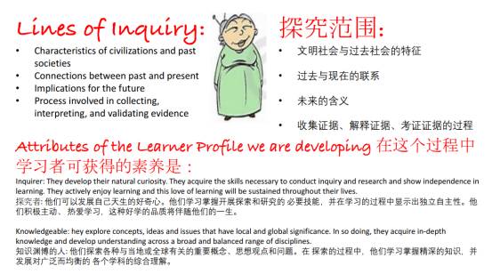 为了更好的与本次博物馆参观联系,我们做了一个小海报,关注了本次出游中的三件物品。我们的学生选择了最触动他们好奇心的三样物品,他们探索这些东西在当今社会是什么样子的。我们的学生用这样的海报来讲现在和过去进行了联系。