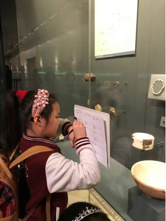 我们的中心思想要求我们观察和评估古代文明的证据,这也是我们出游的目的所在。我们发现很多有趣的证据片段,我们用笔将其记录到我们的访问任务单中。我们记录了物品名称、时代和用处。我们的孩子们找到了这些东西的精妙之处,每个孩子都记录了他们的独到之处,并关注了这些物件最令他们感兴趣的部分。
