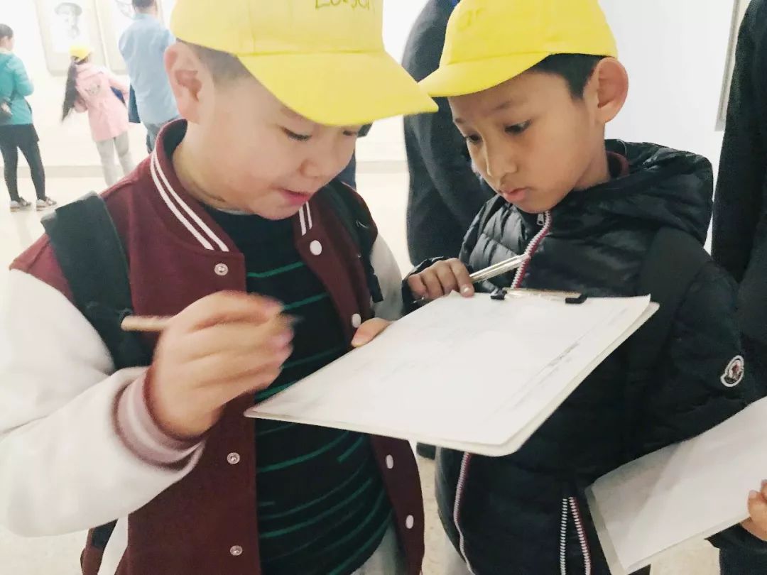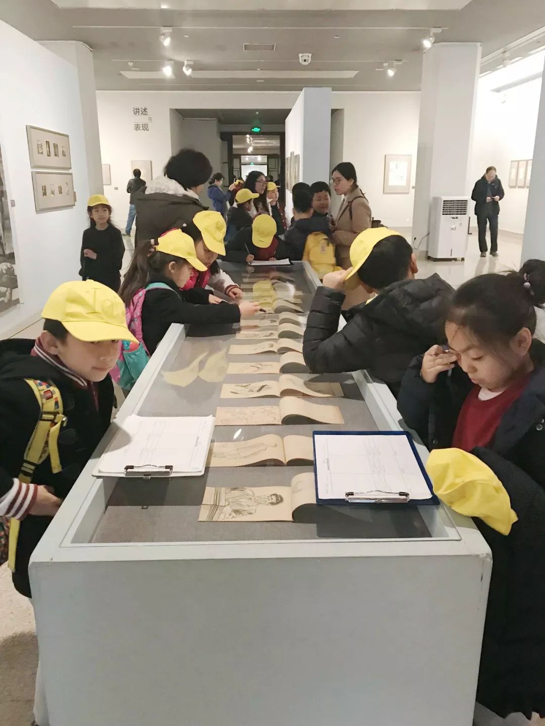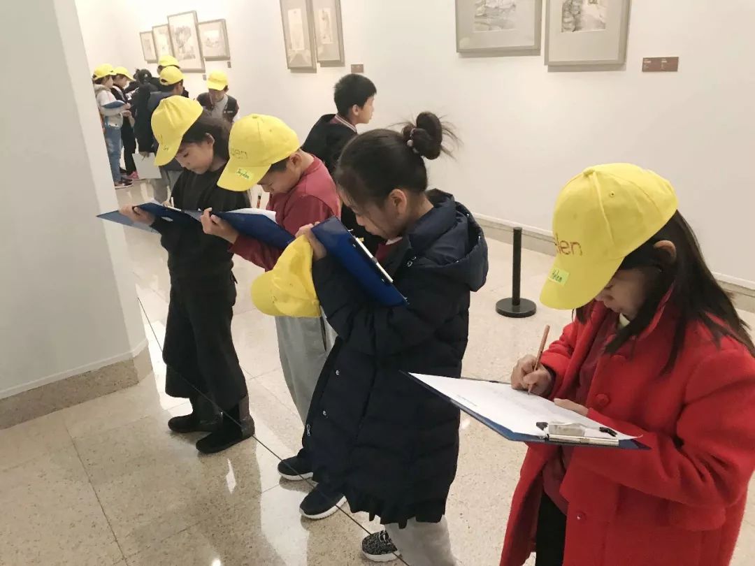 本次展出141件中国美术馆藏品,学生通过这些作品去感受艺术家们传递的思想。在参观的同时,各小组学生们积极地完成探究报告单。