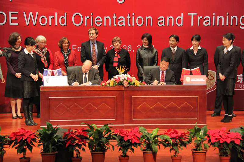 2011年2月25日美国哈佛大学教育学院联合北京王府学校、北京王府外国语学校共同举办的WIDE World教师培训项目正式启动,双方签署全面战略合作协议。来自王府学校、王府外国语学校的100名外教、海归教师及双语教师零距离全面接受哈佛大学教育培训。