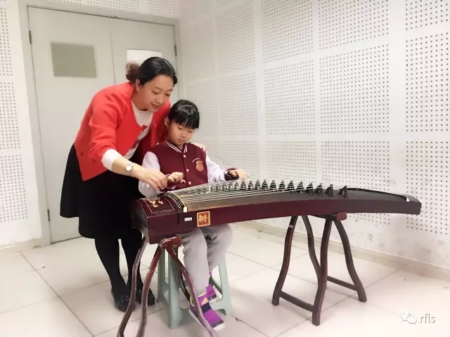 The guzheng, also known as the Chinese zither, is a Chinese plucked string instrument with a more than 2,500-year history. Many people love to hear its beautiful sound. Last semester, seven first graders joined in the introductory class taught by music teacher Zhao Haijun.