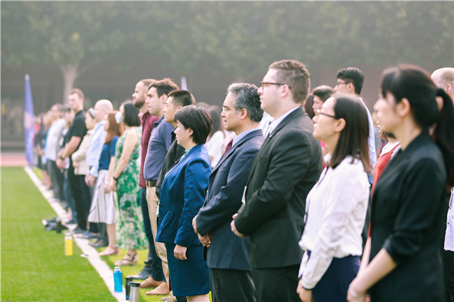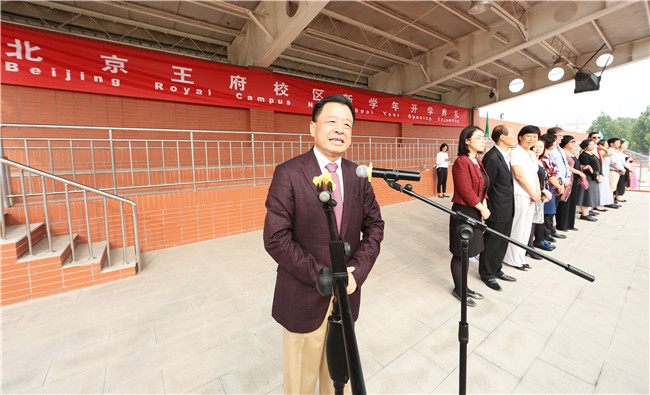 On September 4, 2017 the entire student body, all teachers and staff of Beijing Royal School’s campus community sparked with excitement at the Opening Ceremony held on the campus field and track. This ceremony marked the beginning of a new academic year as well as the largest student population in the history of the school’s existence: 3,000+. The last to speak at the Opening Ceremony, and our most beloved and honored speaker, was Principal Wang Guangfa. He warmly welcomed the new members of our international community, as well as all those returning members. He urged all teachers to step forward as stewards for students on their voyage towards global vision and competence in their studies.