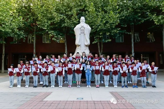 September 28th this year is the 2568th birthday of the saint Confucius . In order to celebrate the birthday, to cherish the memory of Confucius, Junior High School of RFLS held a classic reading activity on the theme of “commemorate the birthday of Confucius”. Students and teachers in sixth grade of Junior high school read the Confucian classics “Disciples” before the sculpture of Confucius.
