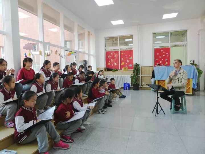 The chorus has three parts, soprano, alto, and baritone. Ethan gave the students very detailed training on pronunciation, intonation and the coordination of different vocal parts. At the same time, Ethan made the students sample the feeling of this song in their hearts in order to better realize the artistic representation of this song.