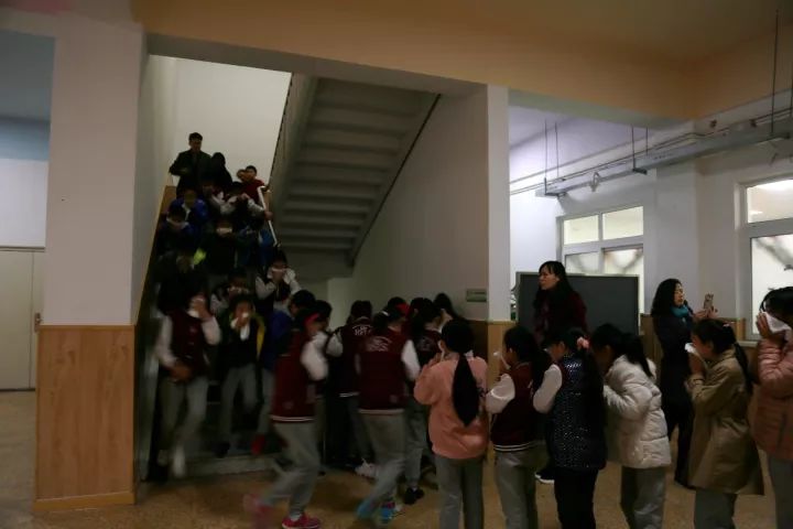 Right after the fire alarm, teachers immediately arrived at the designated assembly points of No 2 building and began directing students to evacuate quickly and quietly. To make the drill look real, several cans of smoke were put around the campus to create a lot of smoke.