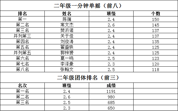 Recently, the school held a jump rope competition based on grade level. It included individual and team events. Not only did our students get high scoress, but they also learned the importance of teamwork . Furthermore, jump rope is great for parent-child bonding. We sincerely hope that all of our students’ parents can join us!