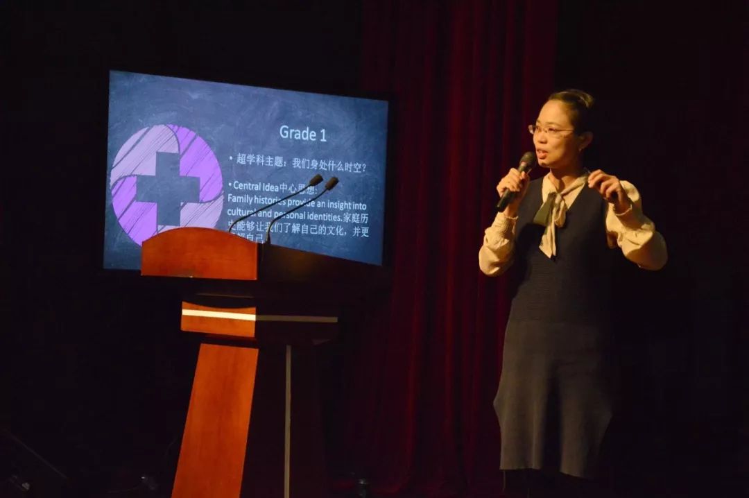 Next, Ms Chen from 2nd grade gave her speech about integration, which included transdisciplinary learning and how Maths can be integrated with the six PYP transdisciplinary themes. It should be noted that a whole-school approach should be taken when developing and refining a programme of inquiry, and Maths should work with other subjects to help students develop an understanding of the central ideas of each theme. By displaying some worksheets, pictures and videos, Ms Chen showed the audience that Maths learning can be integrated with all subjects: Arts, Music, Dancing, and language learning, etc., and the best part of transdisciplinary learning. When parents and teachers watched a video of the student who danced with 9 timestable chant, they were amazed to see students having a lot of fun during learning.