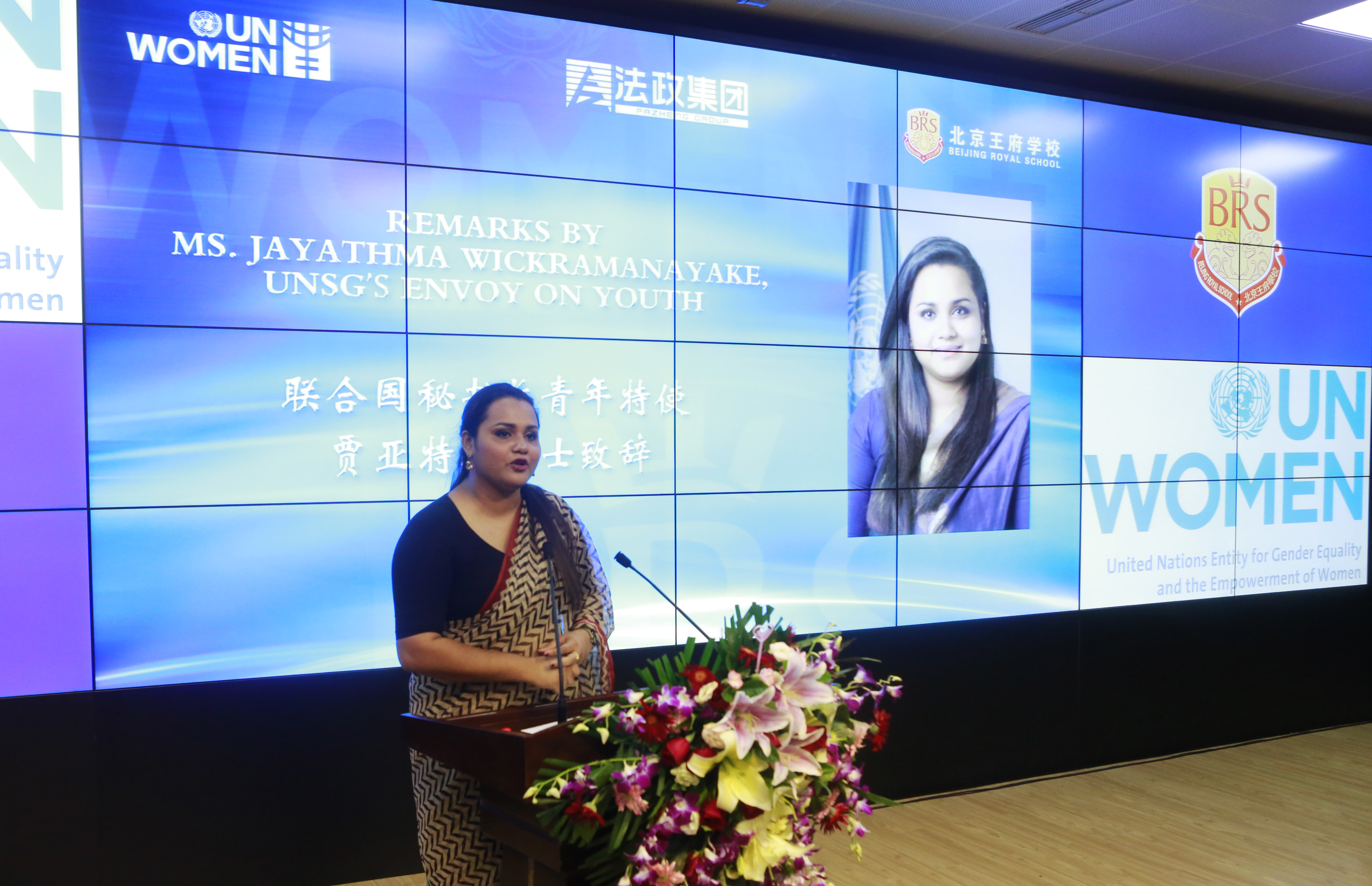 On August 1st, Beijing Royal School co-hosted a Forum on Gender Equality and Peer Education by UN Women. Ms. Jayathma Wickramanayake, the UN Secretary General’s Envoy on Youth, and Chinese peer educators at BRS discussed the critical roles today’s youths play in advancing gender equality and preventing gender-based violence. Representatives from embassies, education institutions, youth groups and other stakeholders participated in the event and learned about the UN Women’s Youth Empowerment efforts.