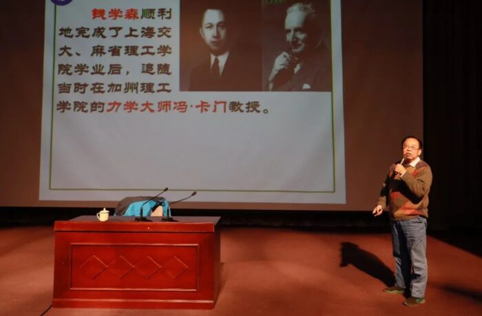 Beginning with his respected teacher Professor Qian Xuesen, Professor Zhang told some of the stories of Professor Qian Xuesen’s life experiences, including his difficult journey back to China, his rigorous pursuit of all that is scientific, and his great contributions to China’s “Two Bombs and One Satellite” research after his return to China. Professor Zhang’s motivation in sharing this was to encourage our students to seize opportunities to learn, to cultivate patriotism and innovative thinking, and to hold dear the precious wealth of knowledge gained through past scientists.