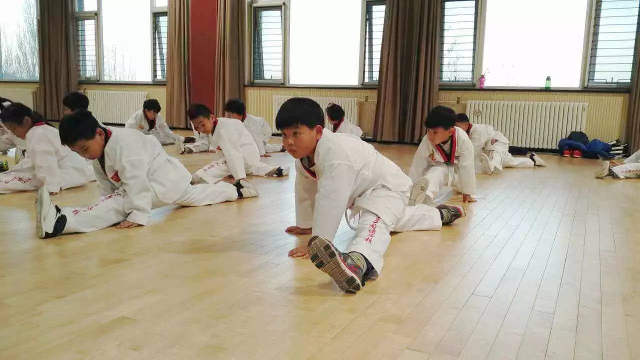 There are 53 students from Grade 1 to Grade 6 in the Taekwondo class. Although they are of different ages, the students share the determination and the sportsmanship.