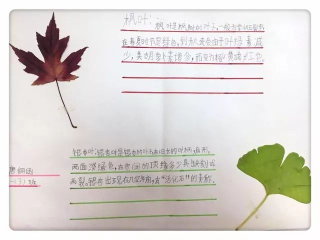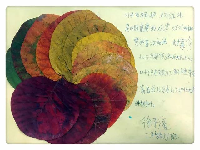 Chinese homework takes on different forms, as we want students to “move” their pens, hands and brains at the same time. For example, after learning “The Song of Trees”, we let students walk into nature to observe different tree leaves and take beautiful tree samples. Furthermore, teachers encourage students to make stories related to autumn leaves using their own imagination.