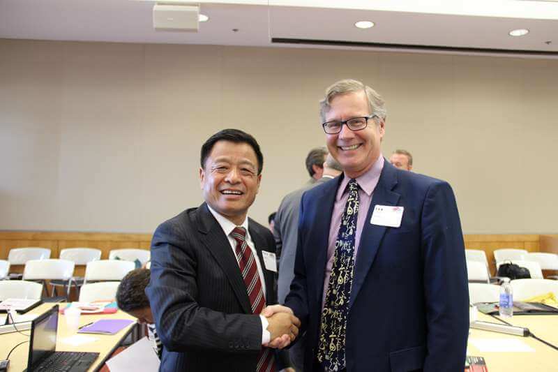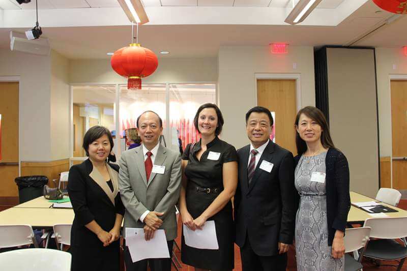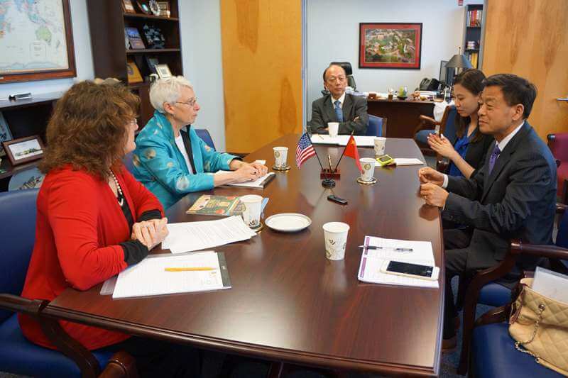2015 年5 月,与北卡州立大学教育学院院长玛丽 安 丹诺维姿(左二)